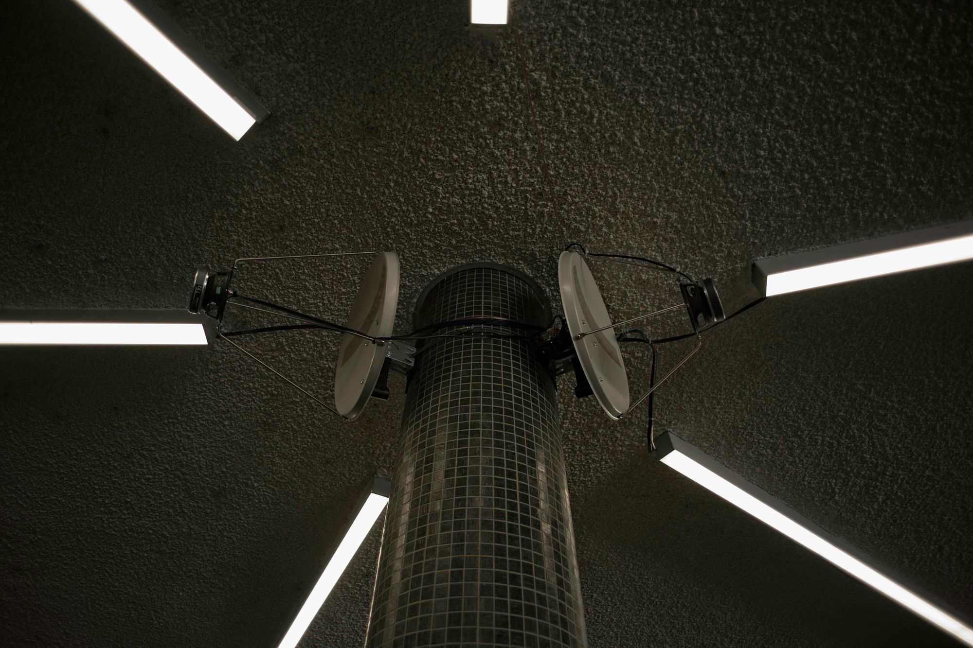 Es gibt aber ein paar seltene v’alsche Vögel, die sich genau hierher verirrten, nein, sie haben etwas vor. Sie wissen zwar selber noch nicht, was sie hier verloren haben. Genau! Hier klingt was! ganz fein, es klingt wie der nächtliche Ruf eines Waldkäuzchens. Ganz falsch, würden wir sagen: Falscher Ort, falsche Zeit. Plötzlich aus dem akustischen Nichts eine gekränkte Krähe – zugegeben sie klingt hysterisch, schreit stur drauflos, quer durch die Halle, solange, bis sie von draussen Antwort kriegt. Das gefällt dem Glühwürmchenchor überhaupt nicht! Sagtest Du Glühwürmchen? Ja interaktiv generativ gesteuerte Handysignale, “fyerflies” aus einer Arbeit von Juan David Bermúdez von der Uni in Mainz, an der ich 2021 einen Workshop für Bioakustik leitete. Die migrierten, während ich die Jakobsleiter zusammenzusetzen versuchte, unerlaubt über die digitale Grenze und besetzen nun meine Kanäle, um in das Labyrinth der Cordula Passage vordringen zu können.